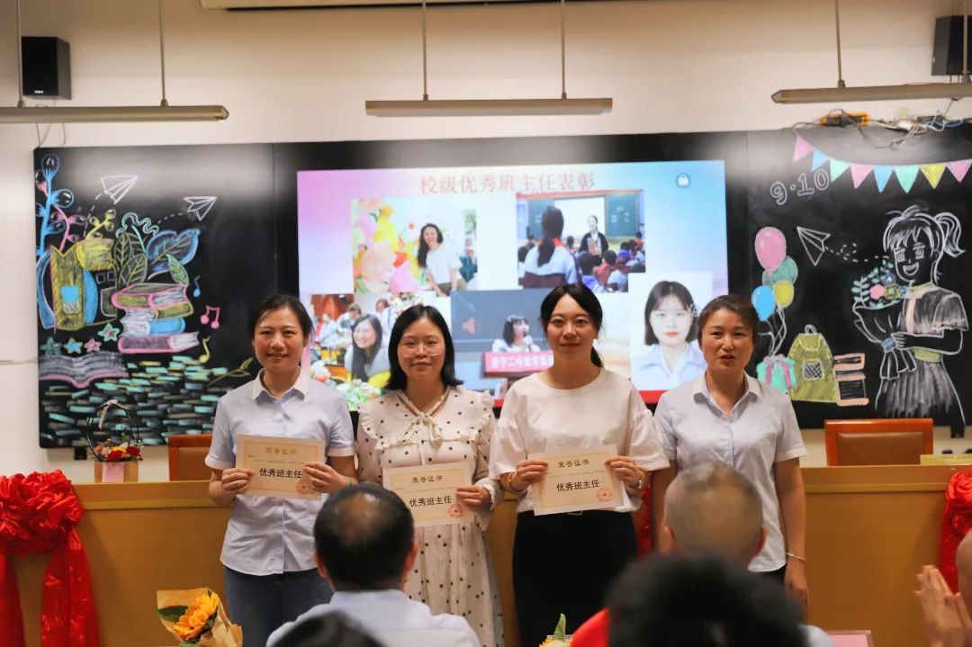 在頒獎環(huán)節(jié),學(xué)校領(lǐng)導(dǎo)班子為受市委市政府、市教體局表彰人員、優(yōu)秀教師、優(yōu)秀班主任、優(yōu)秀教育工作者頒發(fā)榮譽證書,表彰他們?yōu)閷W(xué)校教育工作做出的杰出貢獻(xiàn)。