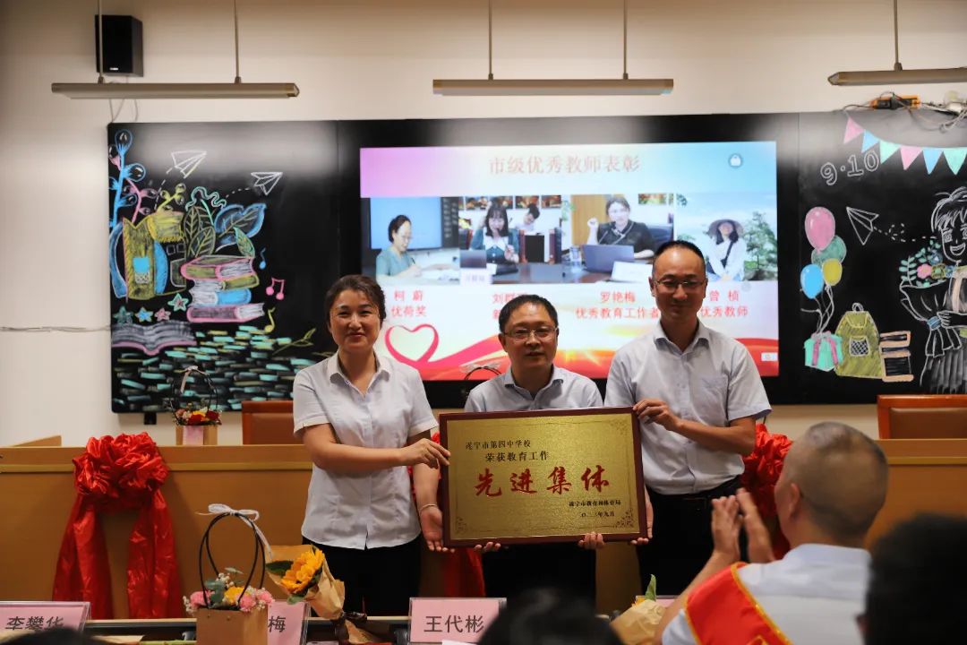 金風(fēng)送爽佳節(jié)臨,紅花碩果暖人心.2023年9月8日在第39個教師節(jié)即將來臨之際,遂寧四中(二中濱江校區(qū))舉行了以“躬耕教壇 ?強國有我”為主題的第39個教師節(jié)慶祝暨表彰大會