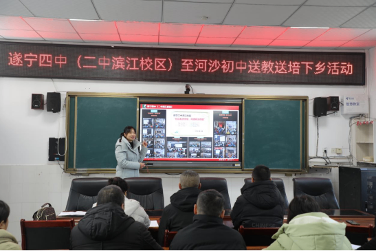 初心如雪,安守歲月。為貫徹落實《教育部關(guān)于進(jìn)一步推進(jìn)義務(wù)教育均衡發(fā)展的若干意見》、《遂寧市教育局關(guān)于規(guī)范市直屬學(xué)校支教農(nóng)村學(xué)校工作的通知》等相關(guān)文件精神,激活學(xué)校的內(nèi)部管理機(jī)制,推動我校校級名師工作室送教下鄉(xiāng)工作,促進(jìn)“新課標(biāo)”精神進(jìn)一步落地,充分發(fā)揮我校教育資源的輻射和帶動作用,12月19日上午,在李攀華副校長的帶領(lǐng)下,我校數(shù)學(xué)名師工作室成員及部分青年教師到河沙初中開展了“一幫一結(jié)對”和“送教送培”活動。