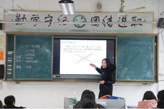 徐慧老師以對頂角的的起源、發(fā)展為引導(dǎo),激起學(xué)生對本節(jié)知識的向往,她從相交線產(chǎn)生的對頂角、鄰補(bǔ)角定義的介紹,再帶領(lǐng)孩子們對它們性質(zhì)得到探索與應(yīng)用,知識層層遞進(jìn),培養(yǎng)了初一孩子們的數(shù)感與邏輯推理能力。