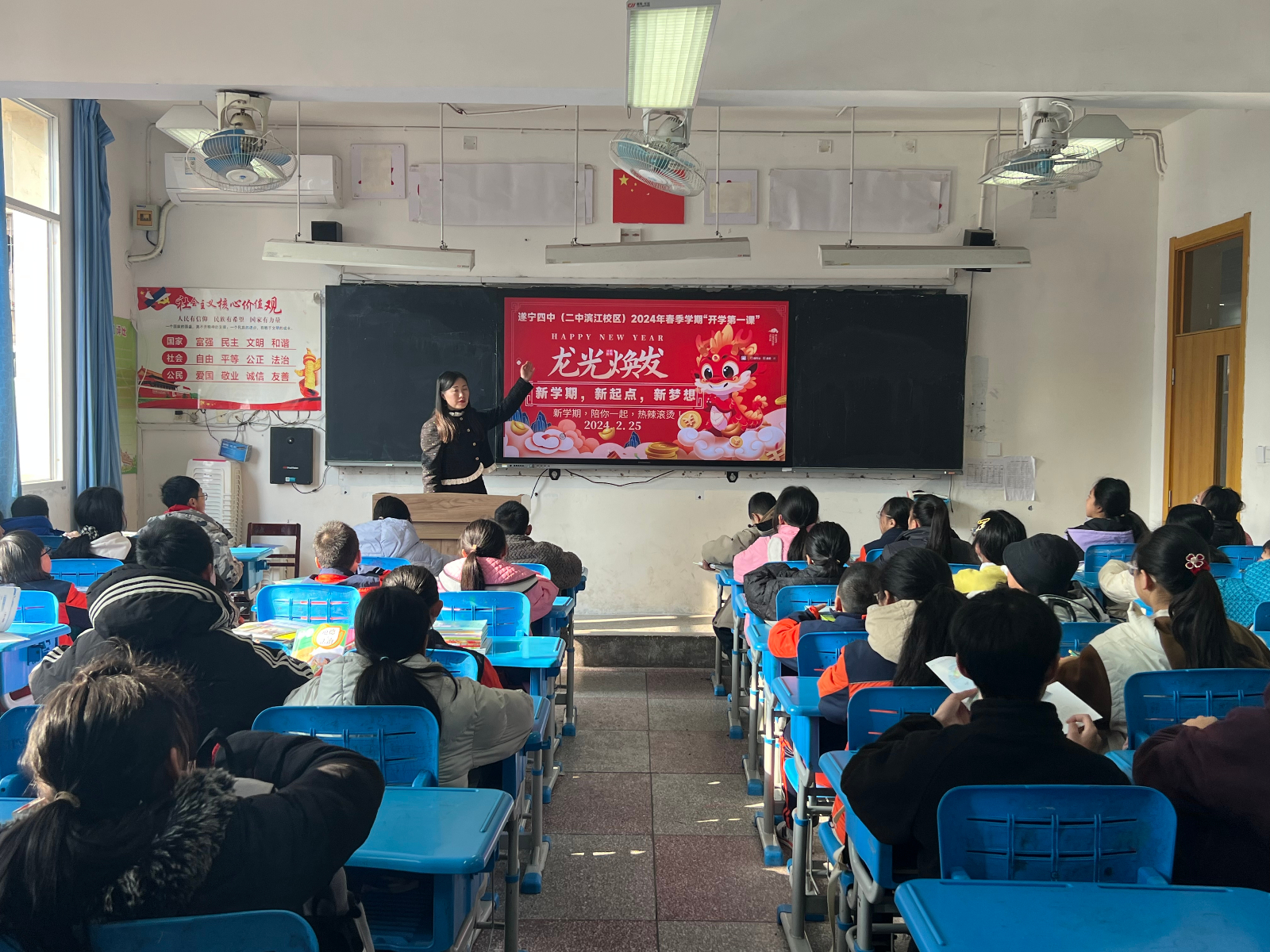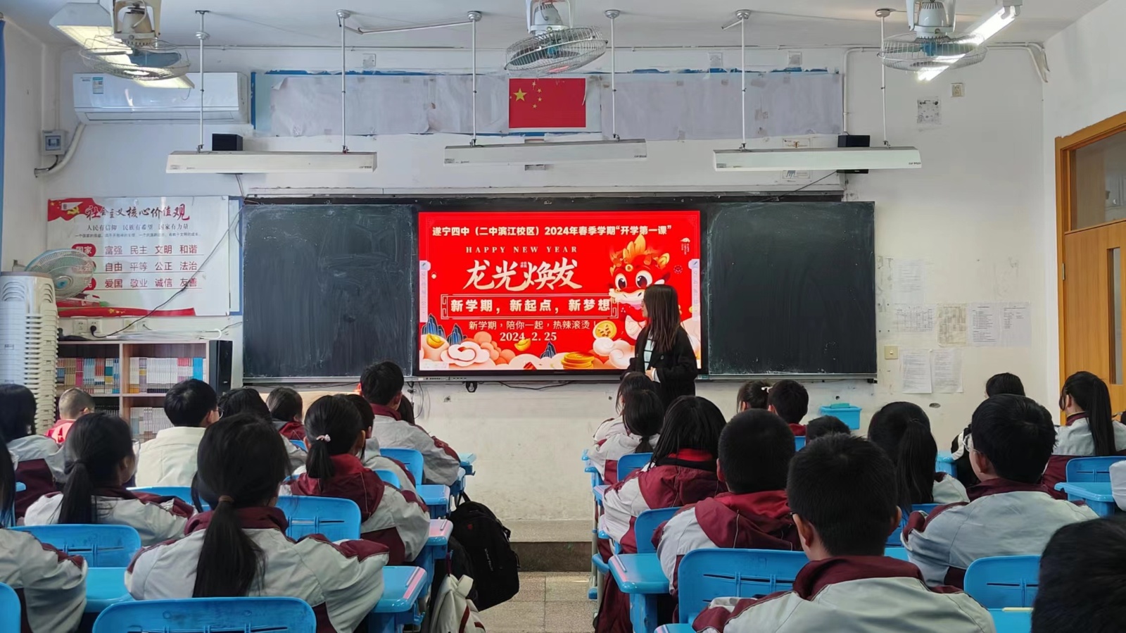 2024 年 2 月 26 日,遂寧四中(二中濱江校區(qū))政教處、校團委舉行了新學期第一次升旗儀式,并開展了“奮斗正當時,同心向未來”的德育大課堂活動。