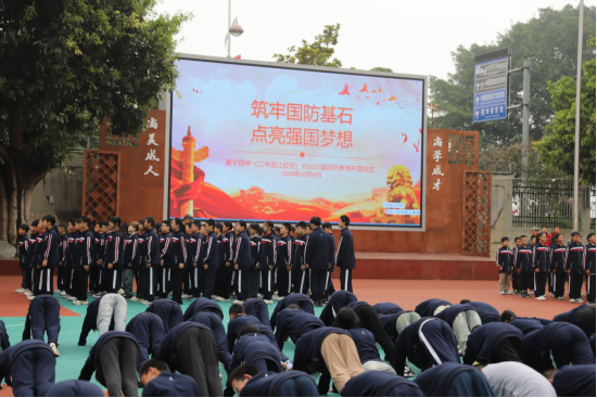國防教育,是增強青少年體魄和毅力的有效途徑。10月8日,遂寧四中隆重舉行軍訓(xùn)開營儀式。在儀式上,羅艷梅副書記要求全體參訓(xùn)同學(xué)認(rèn)真學(xué)習(xí)軍事知識和技能,增強國防觀念,以軍人的標(biāo)準(zhǔn)嚴(yán)格要求自己,在確保安全的基礎(chǔ)上高質(zhì)量、高標(biāo)準(zhǔn)完成訓(xùn)練任務(wù)。