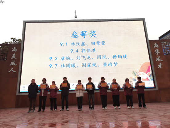 少年潛力無限,即使是零星的優(yōu)秀,也一定能拼湊出燦爛的星河。3月31日,初三語文組教師聯(lián)合學(xué)校美術(shù)組潘蓉老師,經(jīng)過細(xì)致斟酌,評選出一等獎三名,二等獎五名,三等獎十名;由全校師生投票選出“最受歡迎獎”三名,由校領(lǐng)導(dǎo)親自為學(xué)生頒發(fā)獎狀和獎品。