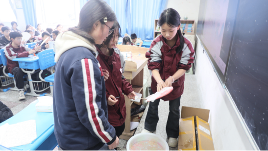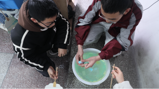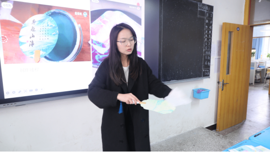 活動伊始,同學(xué)們在老師的指導(dǎo)下,以傳統(tǒng)漆藝技法為基底,用天然顏料為素白扇面染就繽紛底色?;蚯嗑G山水,或朱砂點絳,每一把漆扇都在浸染間流淌出獨特的東方韻味。有學(xué)生表示:“調(diào)色時水的流動讓扇面形成自然紋路,仿佛藏著千年前的詩詞故事。”??