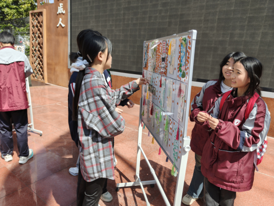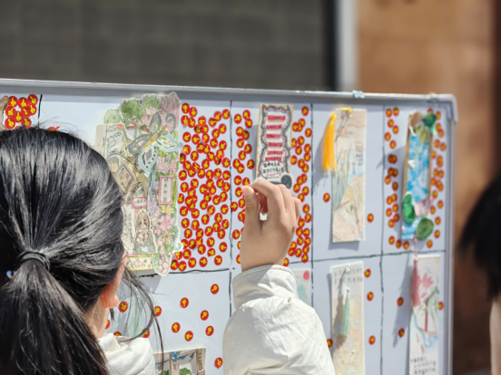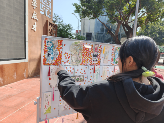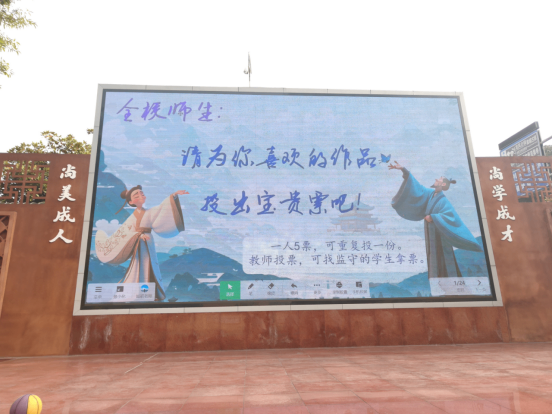 學(xué)校初二語文組聯(lián)合美術(shù)組教師們從“創(chuàng)意性、藝術(shù)性、文化內(nèi)涵"等維度對作品進(jìn)行評選,最終選出50幅優(yōu)秀作品在全校進(jìn)行,師生參與投票,熱鬧非凡。