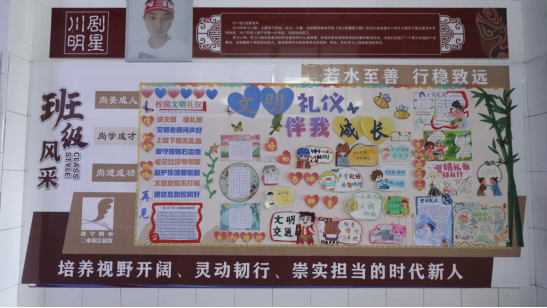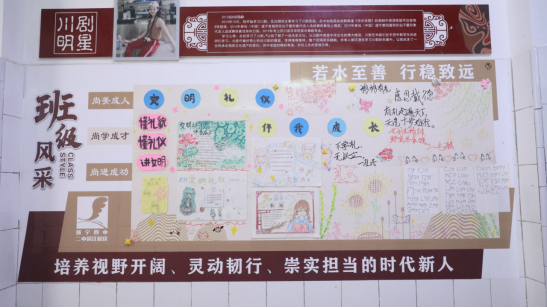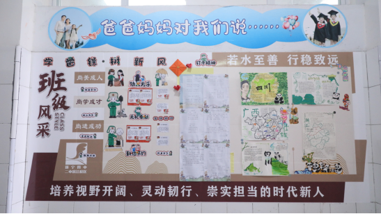 近日,遂寧四中(二中濱江校區(qū))成功舉辦了首屆班級文化墻布置展示活動,此次活動以“班級文化展風(fēng)采 環(huán)境育人潤無聲”為主題,旨在營造積極向上、富有特色的班級文化氛圍,充分發(fā)揮環(huán)境育人的作用。