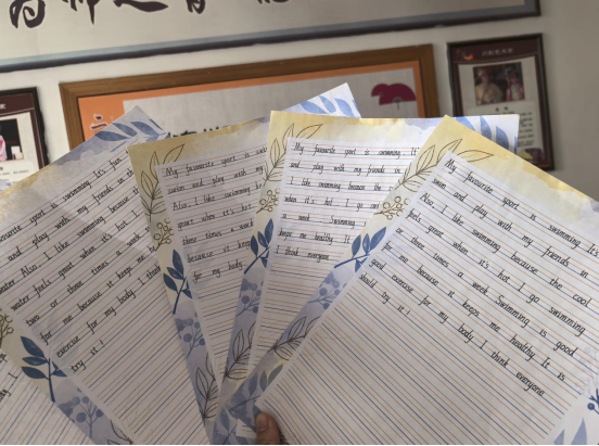 初賽期間,全體學生統(tǒng)一書寫經典英文詩歌或諺語節(jié)選,評委依據(jù)書寫規(guī)范(40%)、美觀度(30%)、版面整潔(30%)標準進行評選,每班前5名晉級決賽。4月11日決賽現(xiàn)場,40名選手于錄播教室限時20分鐘完成《How teenagers keep fit》節(jié)選創(chuàng)作,英語教研組教師從字母結構、語法準確、創(chuàng)意排版等維度即時評分,最終評選出一等獎5名、二等獎15名、三等獎20名,并頒發(fā)英文原版證書。