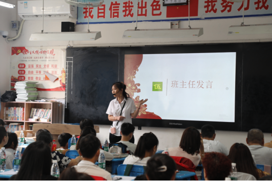 從細節(jié)處見溫度,于方寸間顯匠心。學校團委安排學生志愿者在校園里迎接各位家長的到來。各班級精心布置家長會會場,記錄學生成長、學校發(fā)展的宣傳短片在各班多媒體上循環(huán)播放。