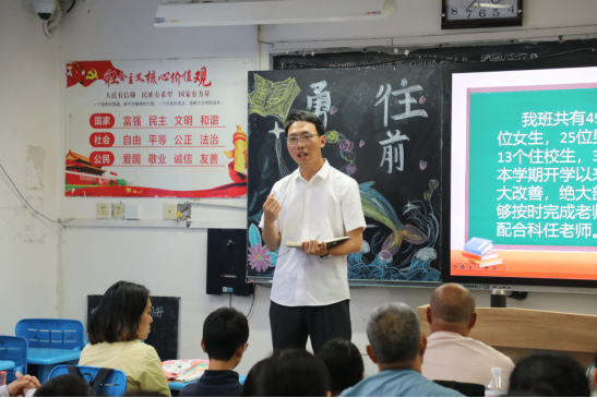 會議伊始,學校黨總支書記、校長王強作了熱情而真摯的致辭。王校長對前半學期的工作進行了全面回顧,細數(shù)學校在各方面取得的豐碩成果。學校大力推進課程改革,積極推進素質教育,努力提高課堂教學質量,豐富課后服務供給,學科素養(yǎng)展評等活動為學生的興趣培養(yǎng)和特長發(fā)展提供了更多的選擇和發(fā)展空間。德育工作多管齊下,穩(wěn)中創(chuàng)優(yōu),遠足拉練、首屆象棋比賽、班級文化墻布置展評、校園朗讀亭主持人培訓、勞動基地建設及勞動教育系列實踐活動等一系列主題鮮明的教育活動有序開展,培養(yǎng)了學生良好的品德和行為習慣,通過勞動教育和心理健康教育,助力學生全面發(fā)展。同時,王校長從營造良好的家庭氛圍、培養(yǎng)孩子的良好習慣、關注孩子的身心健康、加強家校溝通與合作等四個方面給家長們提出了中肯的建議。