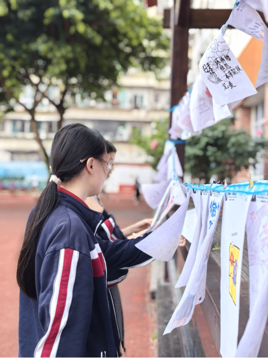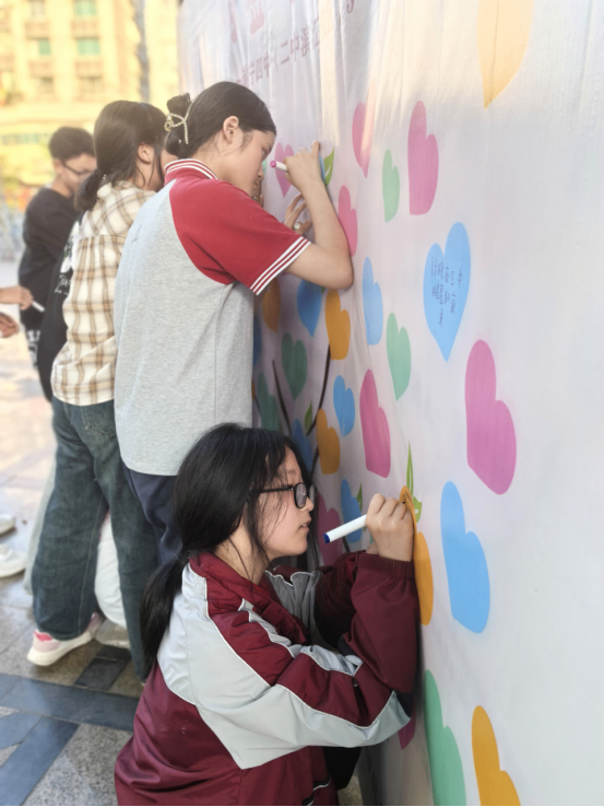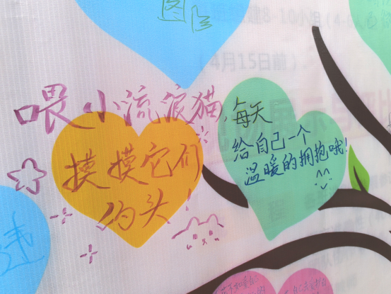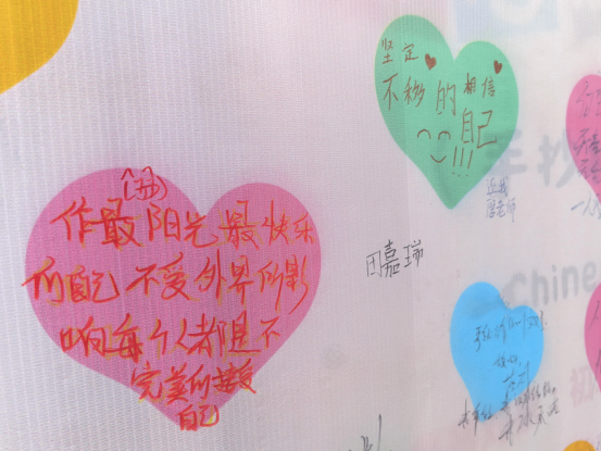 同學們在五彩愛心葉上寫下"接受自己的不完美"、"自己就是最好的花匠"等愛己承諾,讓愛心樹綻放。隨著參與人數(shù)增加,象征成長的愛心葉一時間繁花似錦。