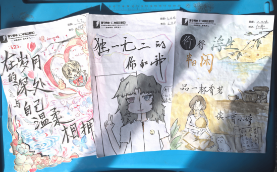 “以夢繪心”心理海報設計大賽更是點燃了學生們的創(chuàng)作熱情。大賽收到百余幅作品,同學們充分發(fā)揮想象力和創(chuàng)造力,用畫筆描繪出心中對愛自己的理解與感悟。一幅幅精美的海報,色彩斑斕、創(chuàng)意十足,展現(xiàn)出學生們獨特的視角和對自我關愛的深刻思考。