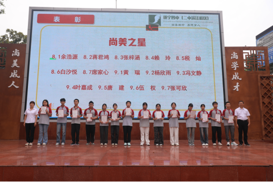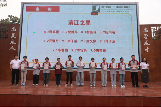 典禮對(duì)上一學(xué)年在品德、學(xué)業(yè)、藝體等方面表現(xiàn)突出的“優(yōu)秀學(xué)生干部”“尚進(jìn)之星”“尚美之星”“尚學(xué)之星”“濱江之星”等優(yōu)秀學(xué)生代表進(jìn)行隆重表彰。獲獎(jiǎng)同學(xué)依次上臺(tái)領(lǐng)獎(jiǎng),他們的專注、勤奮與擔(dān)當(dāng)風(fēng)采贏得全場(chǎng)熱烈掌聲,為全體同學(xué)樹立了“追逐光,成為光,散發(fā)光”的身邊榜樣。
