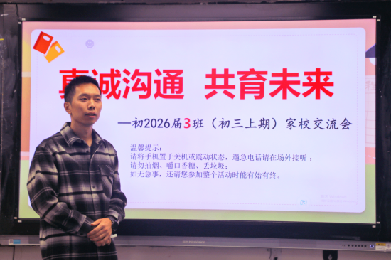 會議伊始,初三年級主管向昆代表年級致歡迎辭,他對家長們的到來表示熱烈歡迎,并強(qiáng)調(diào):“初三是孩子學(xué)業(yè)生涯的關(guān)鍵轉(zhuǎn)折點(diǎn),本次家長會的核心目標(biāo),就是進(jìn)一步加強(qiáng)家校溝通,促進(jìn)家長與教師的合作,共同關(guān)注孩子的成長與發(fā)展,通過家校緊密協(xié)作,為孩子們的中考保駕護(hù)航?!?/span>