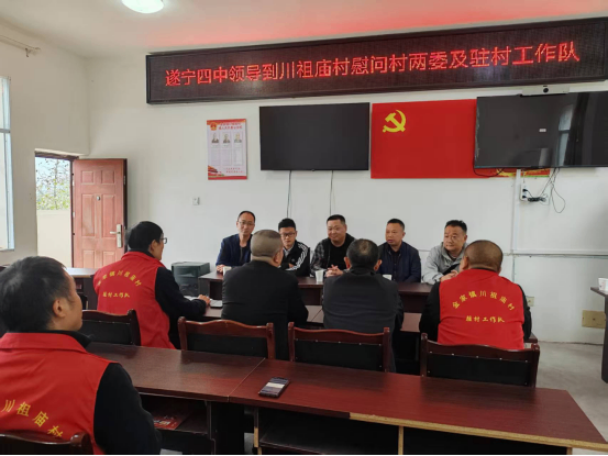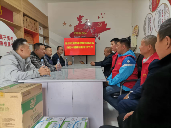 為扎實推進(jìn)鄉(xiāng)村振興幫扶工作,深入了解駐村實際情況,10月27日、29日,遂寧市第四中學(xué)校黨總支書記王強(qiáng)帶領(lǐng)校領(lǐng)導(dǎo)班子成員及有關(guān)干部,先后前往船山區(qū)桂花鎮(zhèn)黃龍村,射洪市金家鎮(zhèn)川祖廟村、涪西鎮(zhèn)斑竹村,開展實地走訪調(diào)研,看望慰問學(xué)校選派的駐村幫扶干部,并與當(dāng)?shù)卮甯刹窟M(jìn)行深入交流。