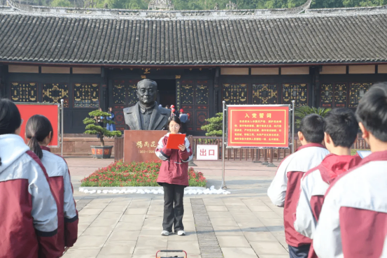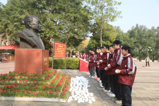 蒼松翠柏映初心,楊尚昆舊居的宣誓廣場上,氣氛莊重而肅穆。同學們身著整齊校服,手持親自做的潔白鮮花,列隊肅立在楊尚昆同志銅像前,目光堅定而崇敬。