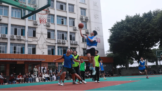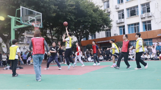 老師們褪去講臺的沉穩(wěn),身著球衣融入賽場,瞬間點燃全場熱情,引發(fā)陣陣尖叫。學(xué)生球員們毫不怯場、敢打敢拼,憑借年輕的爆發(fā)力頻頻發(fā)起猛烈沖擊;老師們則憑借豐富的賽場經(jīng)驗穩(wěn)扎穩(wěn)打,一記記精準(zhǔn)的中距離跳投、巧妙的傳球配合,讓學(xué)生們紛紛起立鼓掌叫好,賽場氛圍推向頂峰。